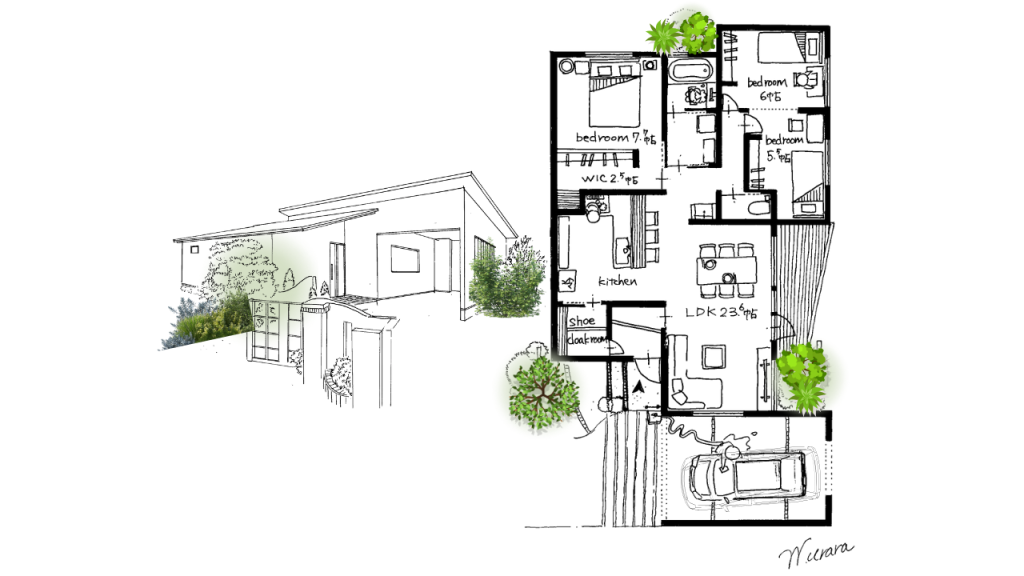 3Dパースや手描き図面で“暮らしの実感”がわく提案を心がけています。