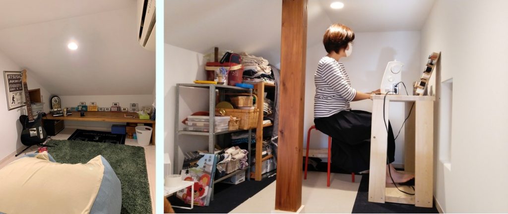 書斎スペースを挟んで両サイドにご夫婦それぞれの趣味部屋