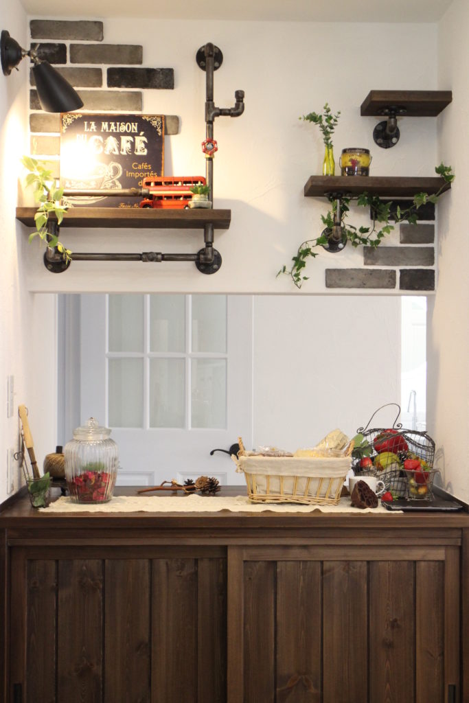 ご主人がコーヒーにこだわりをお持ちで、淹れ方だけでなく道具にも愛着があると伺い、玄関からご家族やお客様が入られたとき、まず最初に淹れたての香りや道具そのものをディスプレイできる空間を作りたいと思いました。
