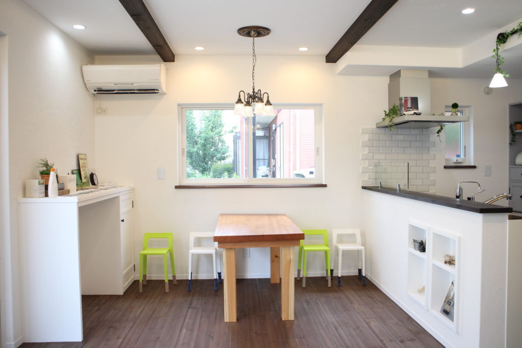 普段電気工事関係をされているご主人自らプロデュースしたAさま邸。プランニングから積極的に提案され、工事期間中はご自身の仕事を終えてから夜遅くまで現場に入って作業をしていました。そんなAさま邸は今までの「あいの家」にプラスアルファの要素を取り入れたニューバージョンのおうちです。